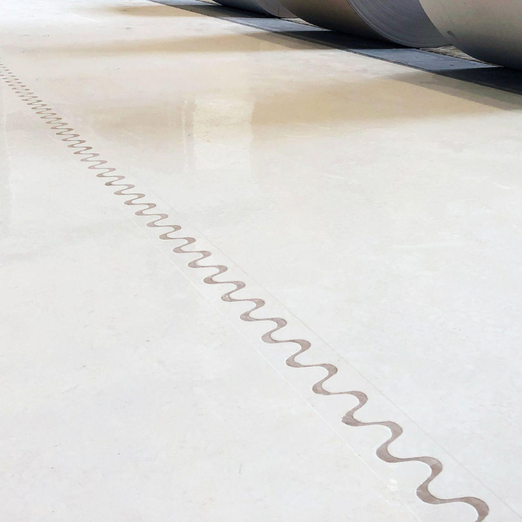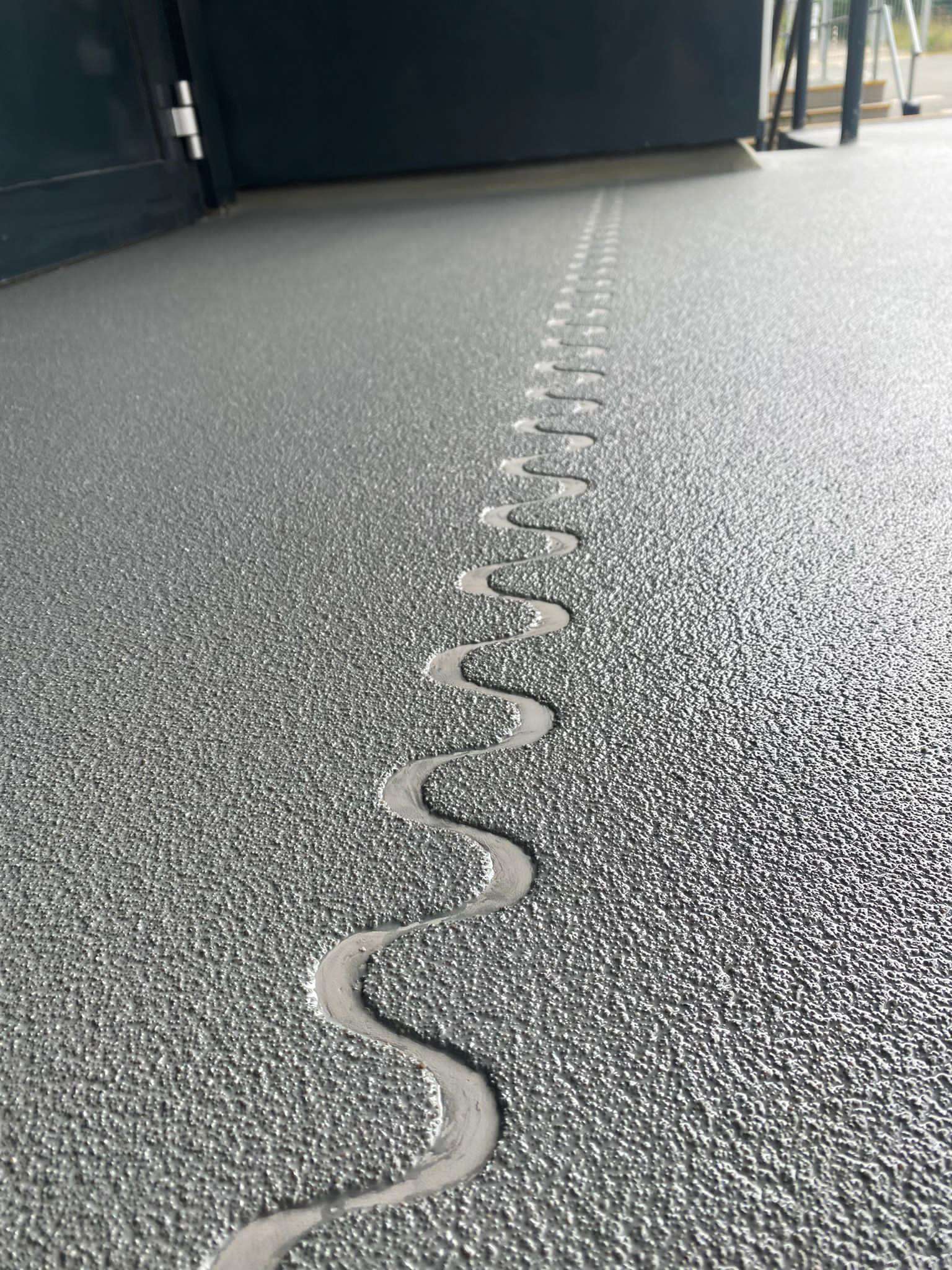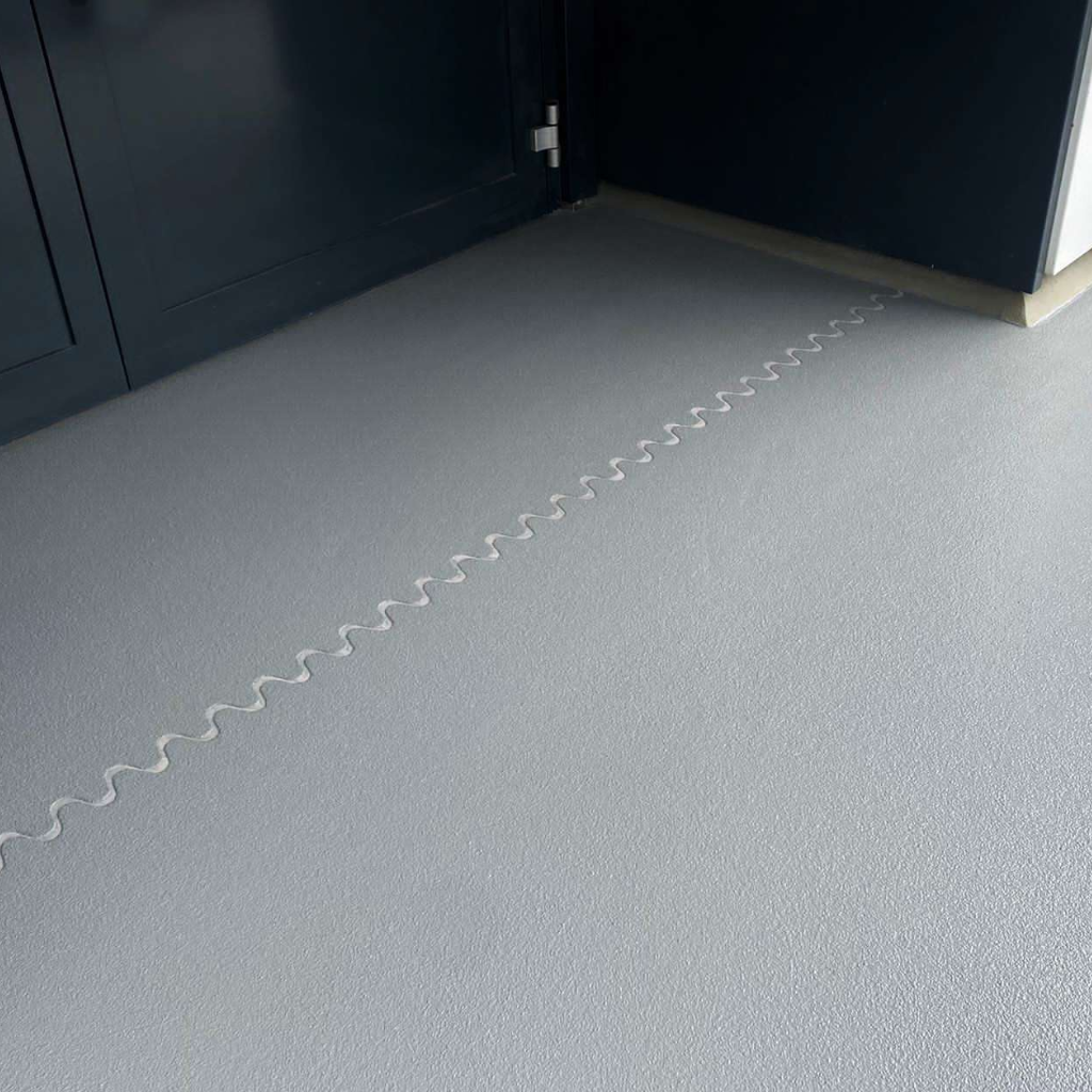 Bodenfugenprofil mit exzentrisch gelagerter Sinuskurve für breite Fugen.