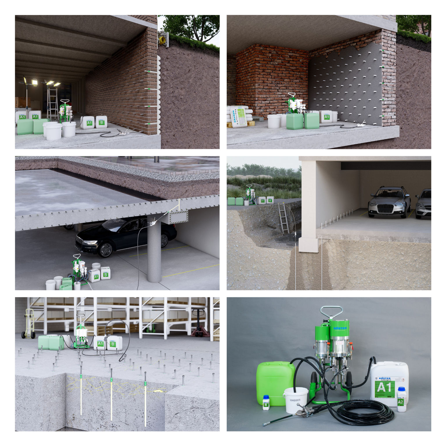 - Verarbeitung mit 2K-Gelpumpe (z. B. KÖSTER Acrylatgel-Pumpe)