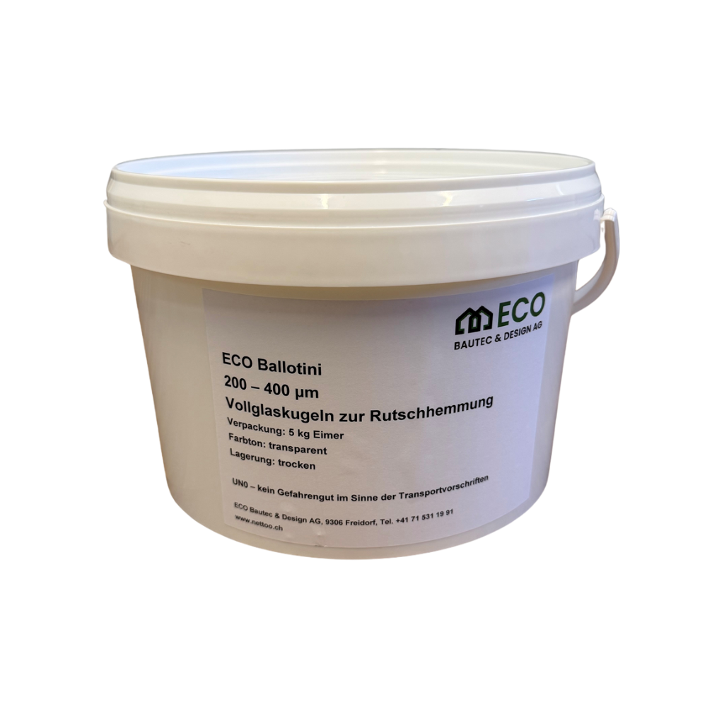 ECO Ballotini 200–400 µm sind transparente Vollglaskugeln zur Rutschhemmung – ideal für den Einsatz in rutschfesten Beschichtungen und Versiegelungen.